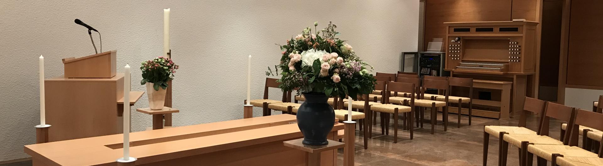 Doté d'un orgue et d'un équipement sonore (CD ou cassette), le lieu de cérémonie offre environ 70 places.