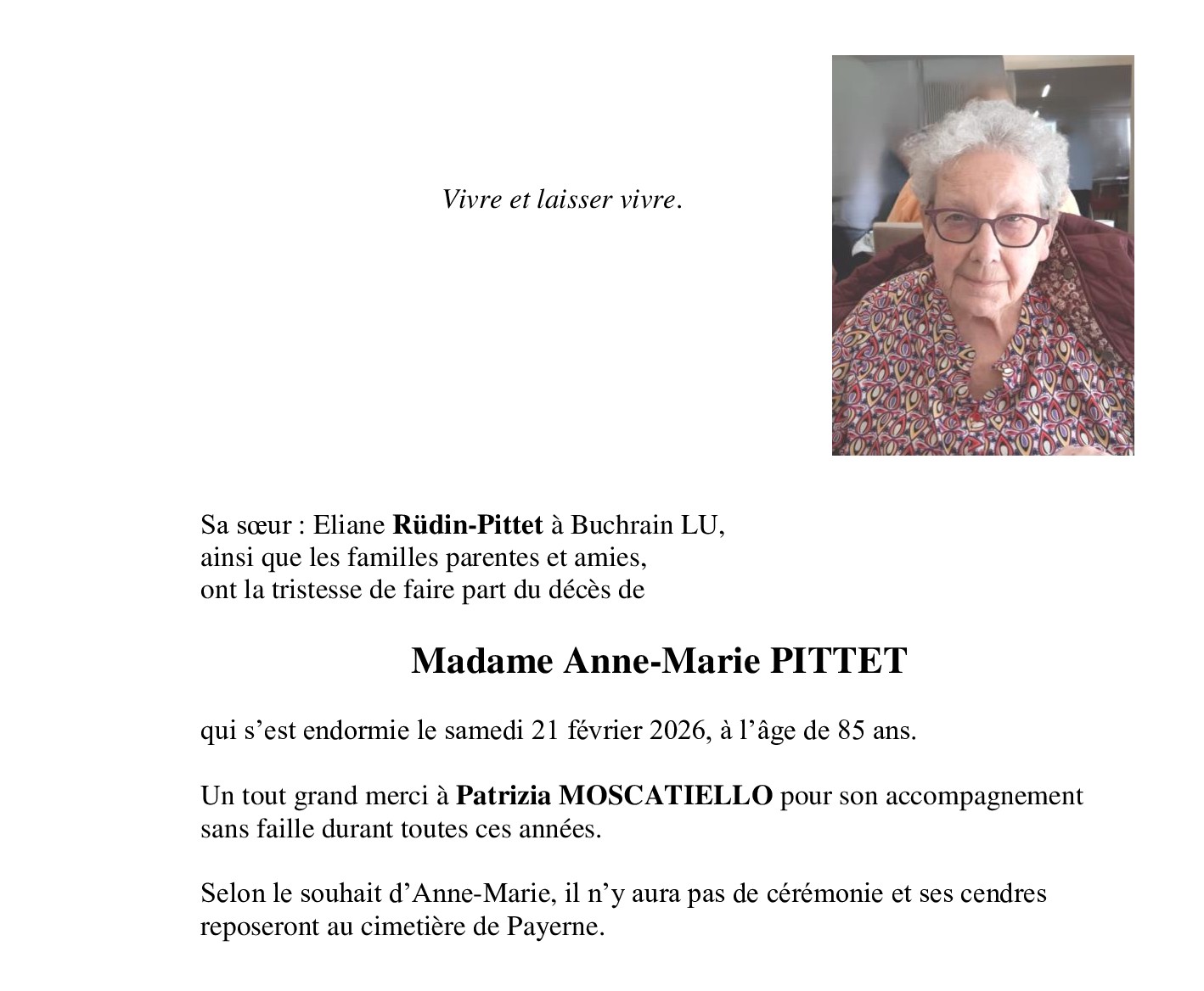 Madame Anne-Marie PITTET