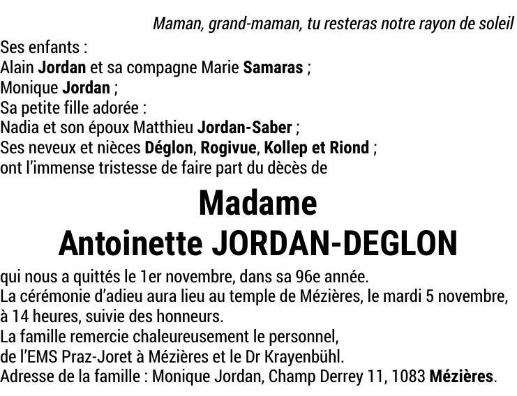 Madame Antoinette JORDAN-DEGLON