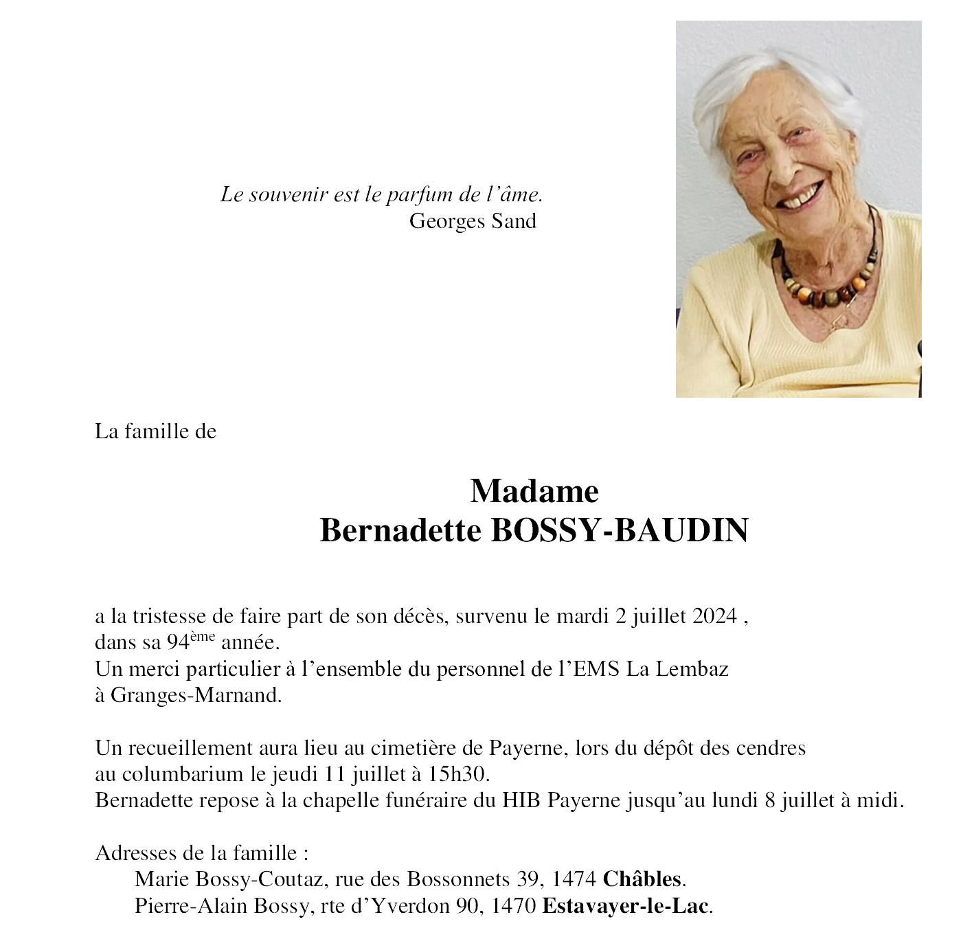 Madame Bernadette BOSSY