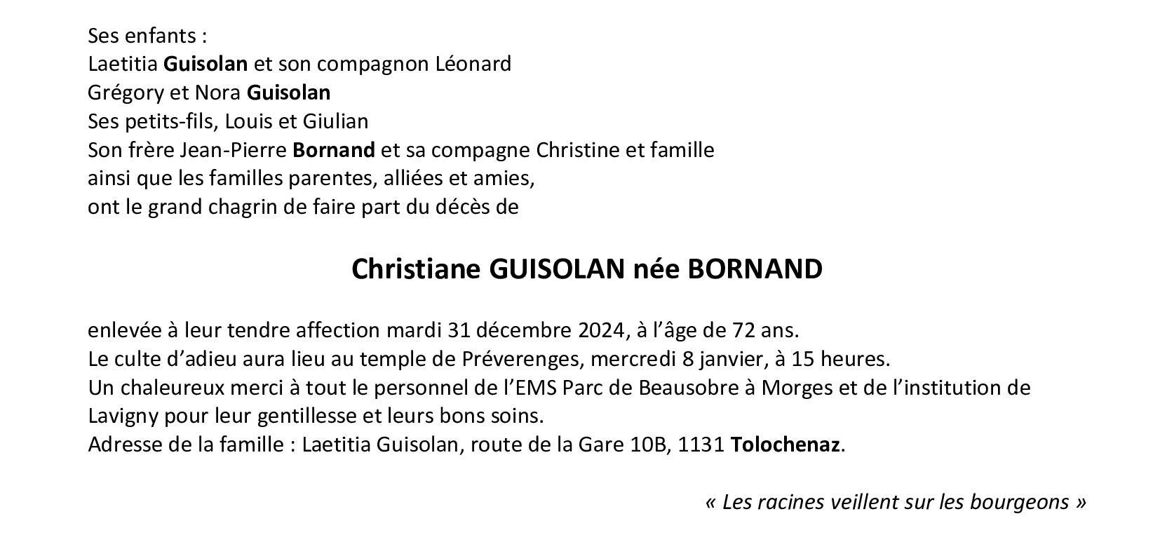 Madame Christiane GUISOLAN