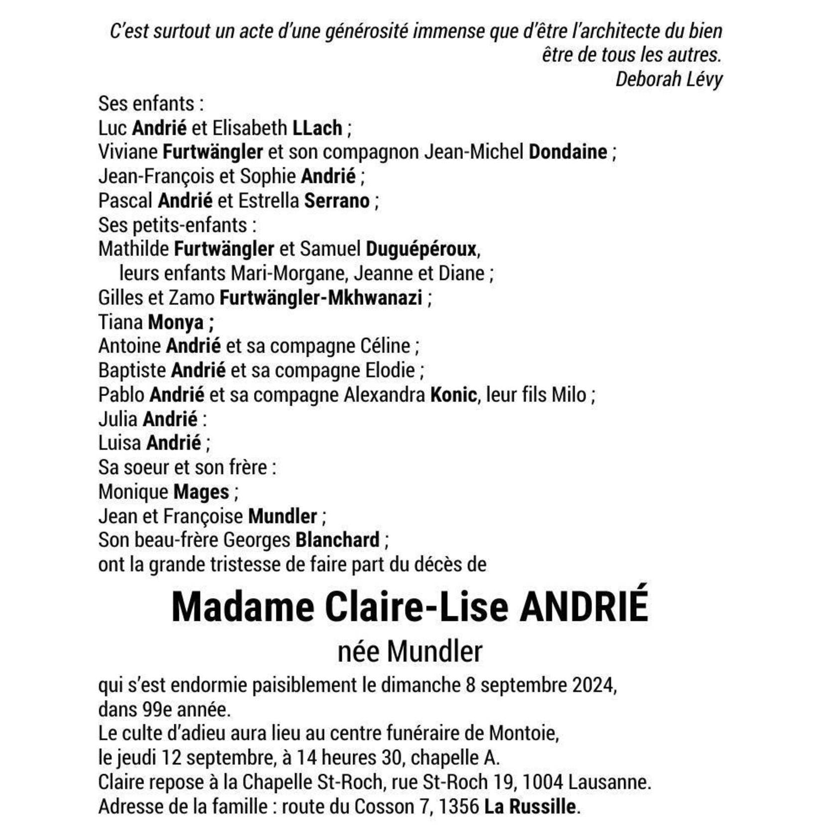 Madame Claire-Lise ANDRIÉ
