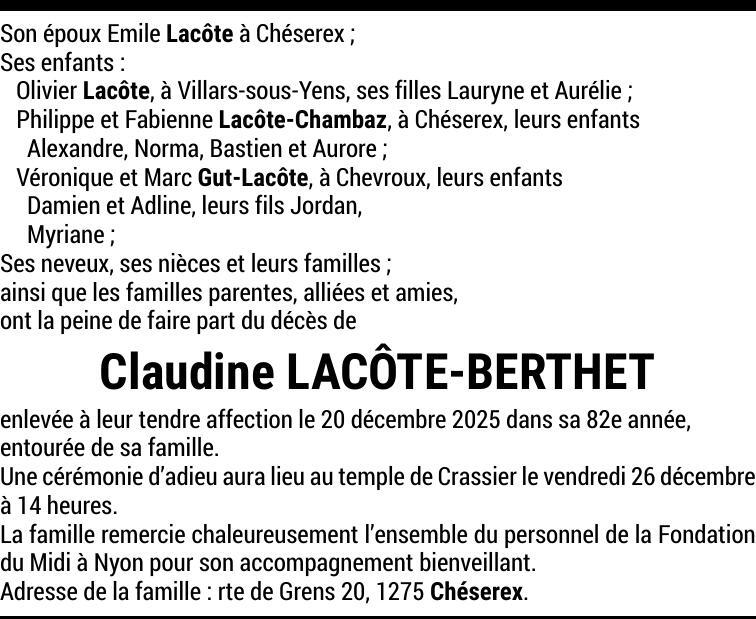 Madame Claudine LACÔTE
