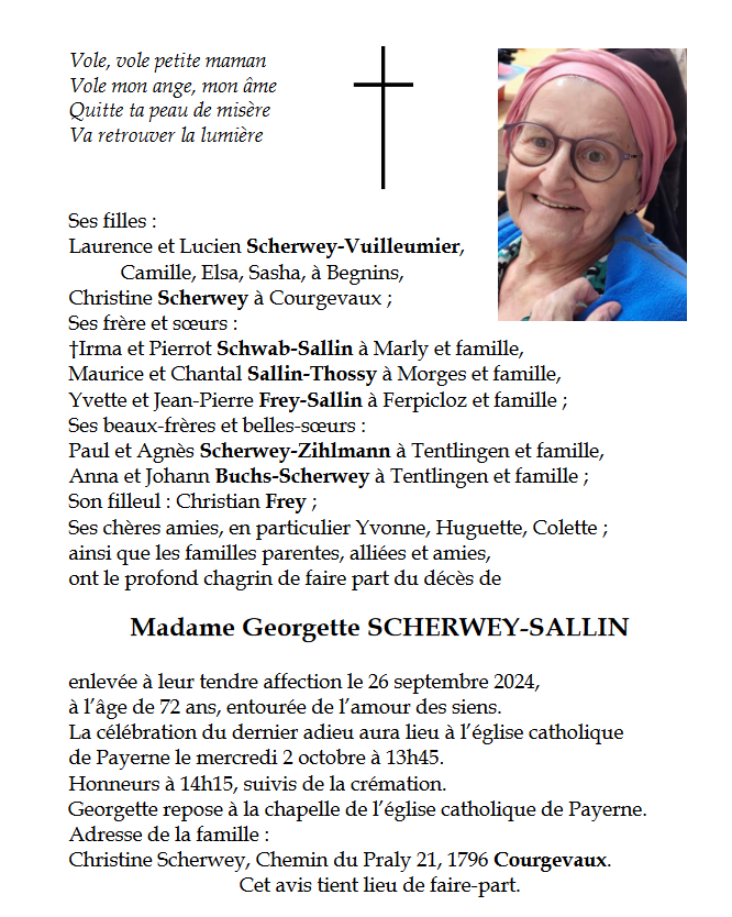 Madame Georgette SCHERWEY-SALLIN
