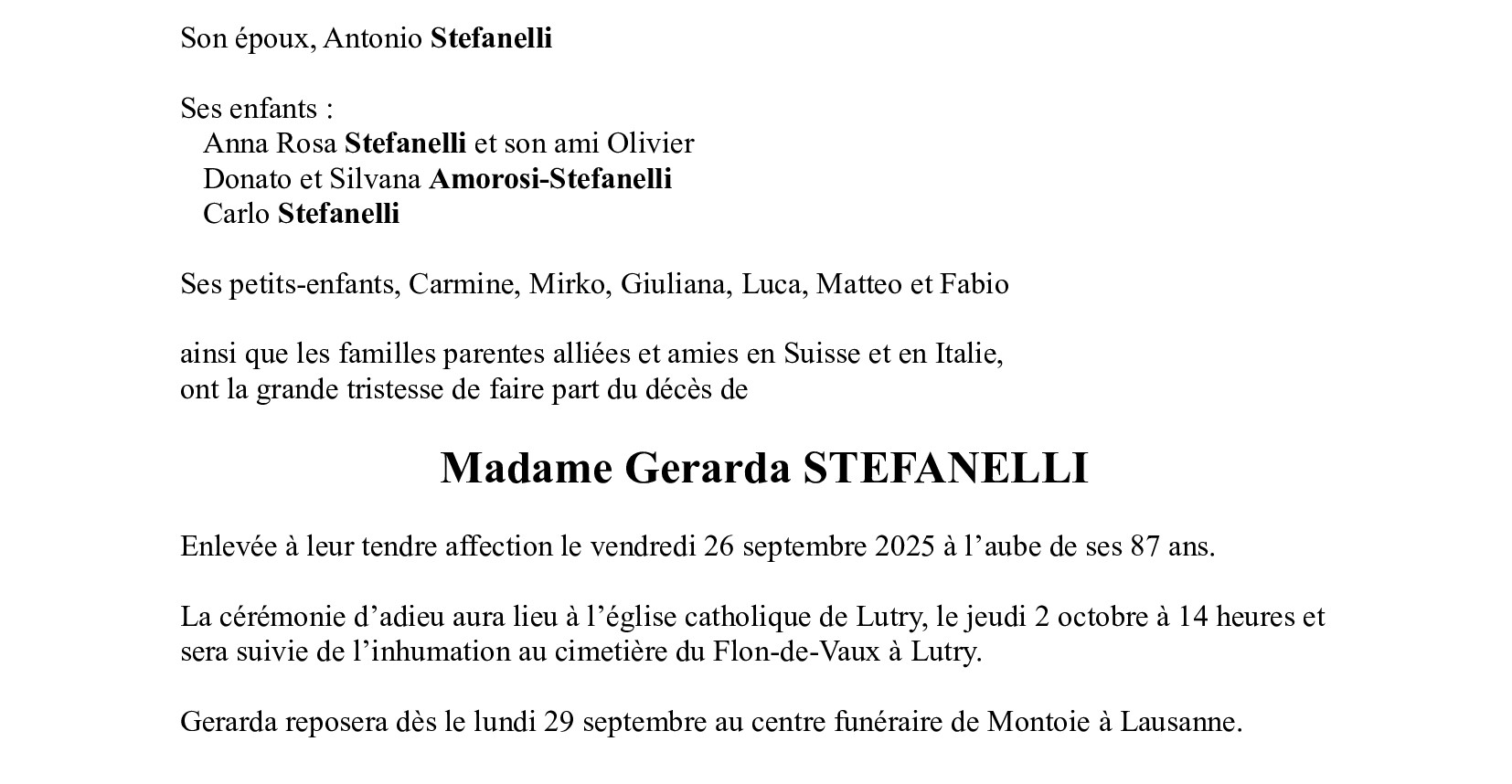 Madame Gerarda STEFANELLI