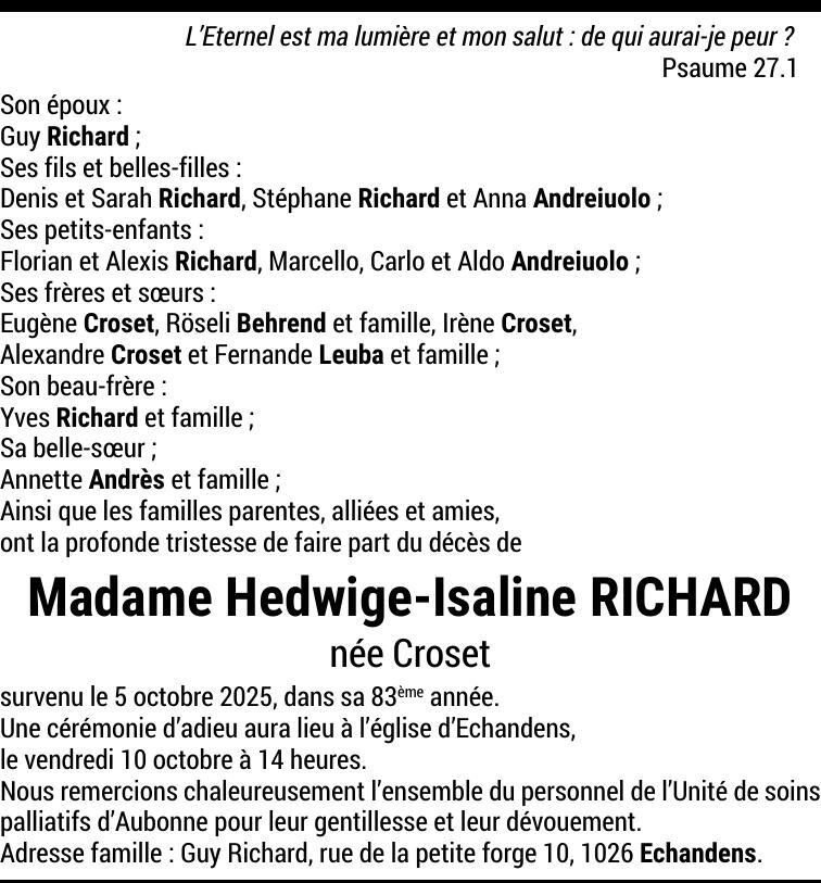 Madame Hedwige RICHARD