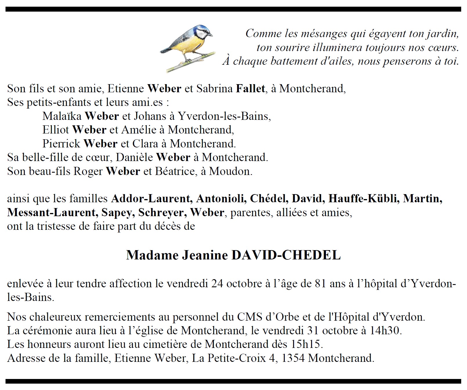 Avis mortuaires / Remerciements