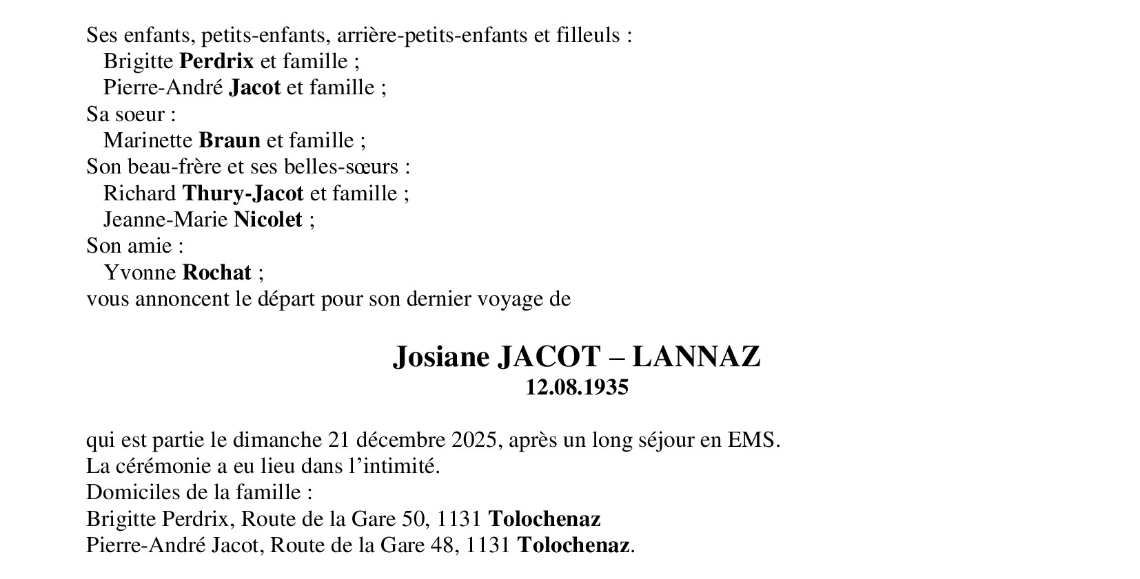 Madame Josiane JACOT