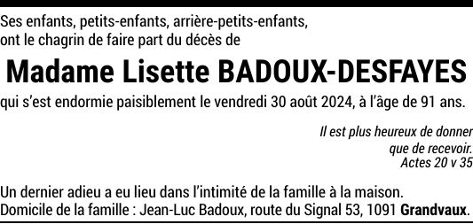 Madame Lisette BADOUX-DESFAYES