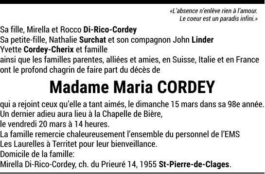 Madame Maria CORDEY