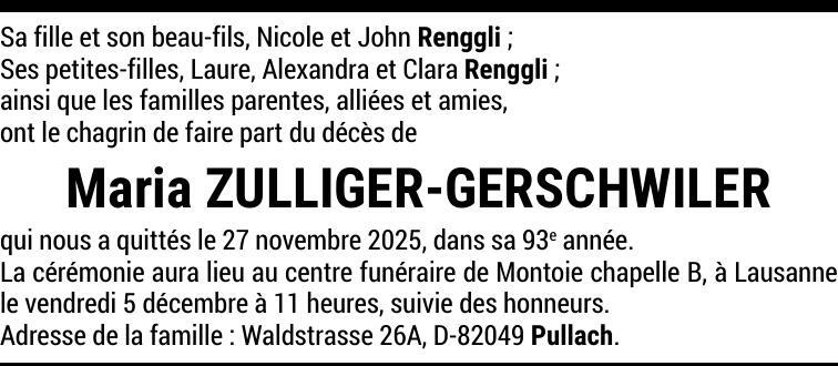 Madame Maria ZULLIGER