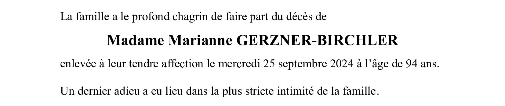 Madame Marianne GERZNER-BIRCHLER