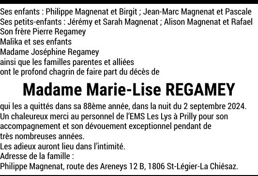 Madame Marie-Lise REGAMEY