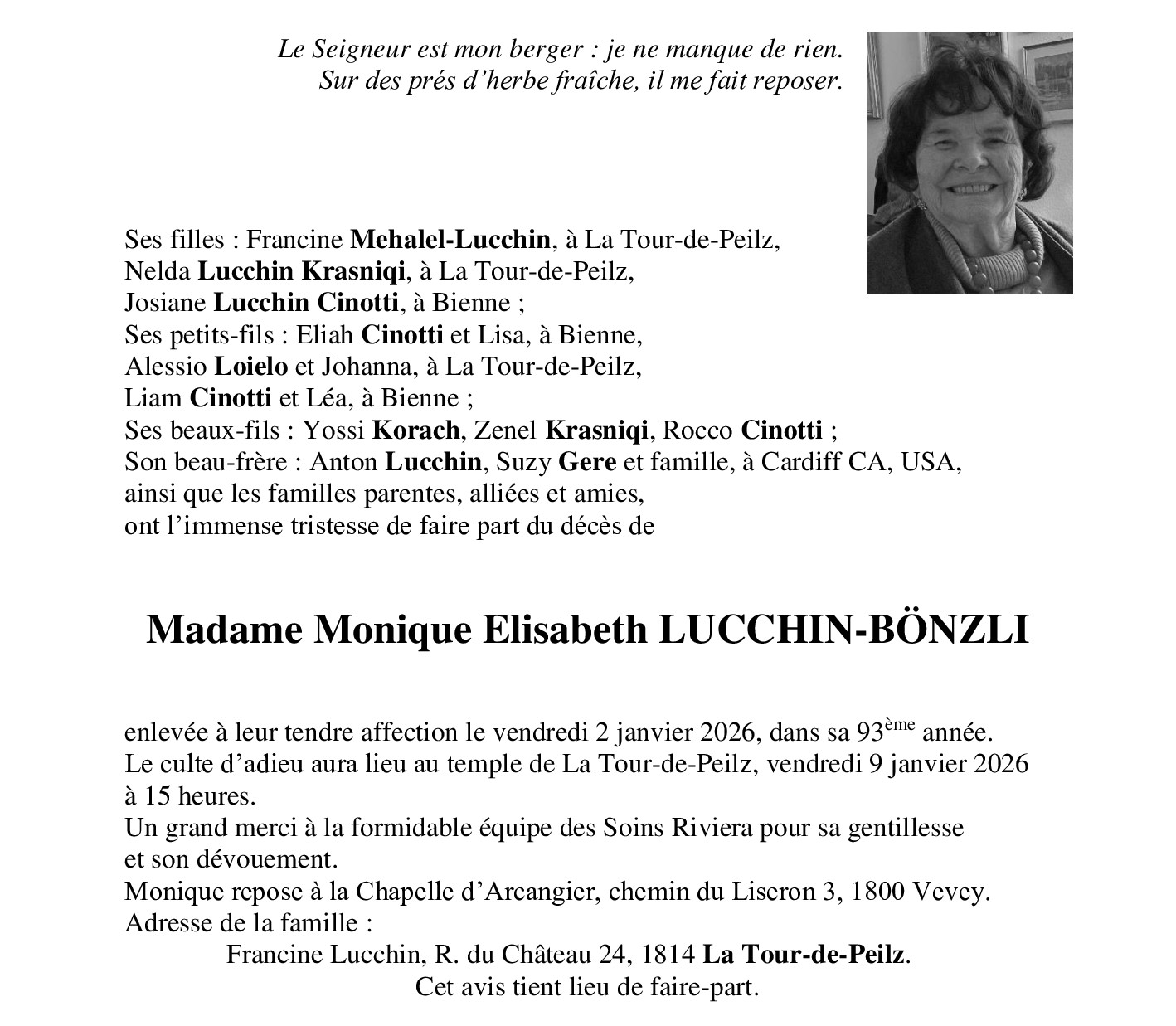Madame Monique Elisabeth LUCCHIN-BÖNZLI