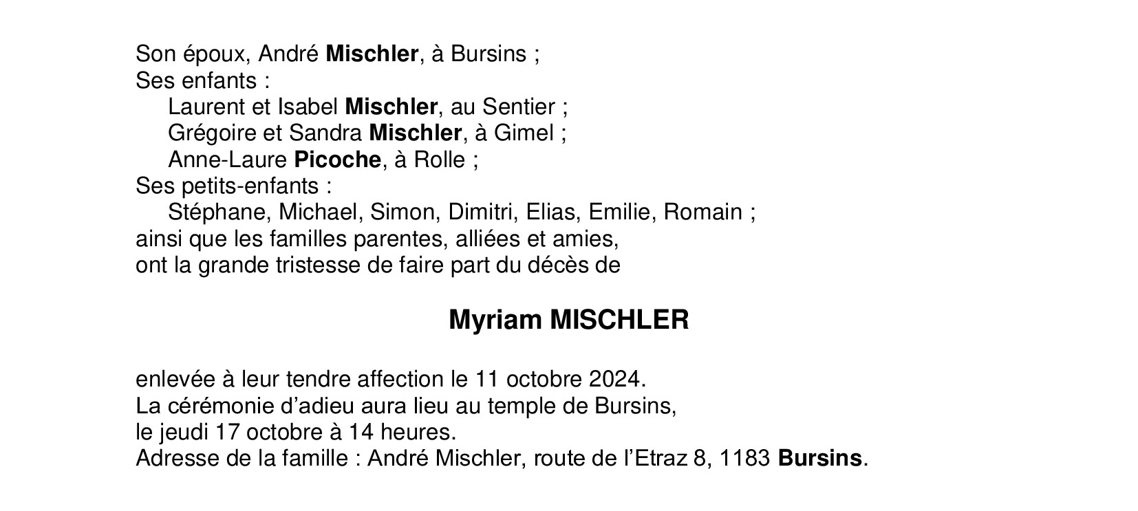 Madame Myriam MISCHLER
