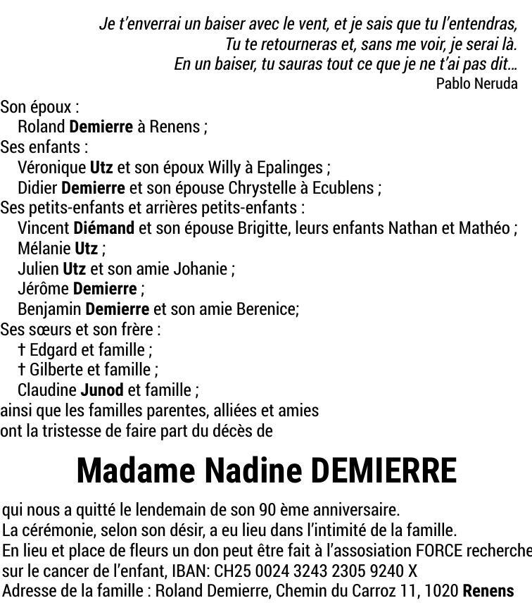 Madame Nadine DEMIERRE