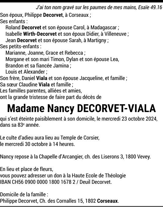 Madame Nancy DECORVET-VIALA