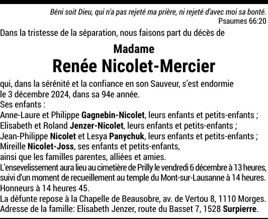 Madame Renée NICOLET-MERCIER