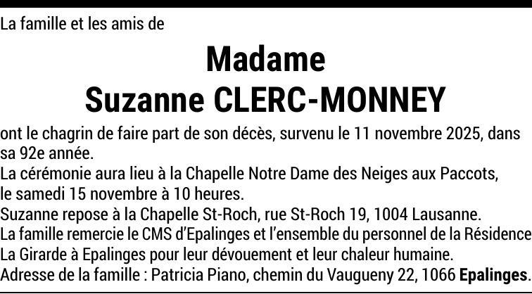 Madame Suzanne CLERC-MONNEY