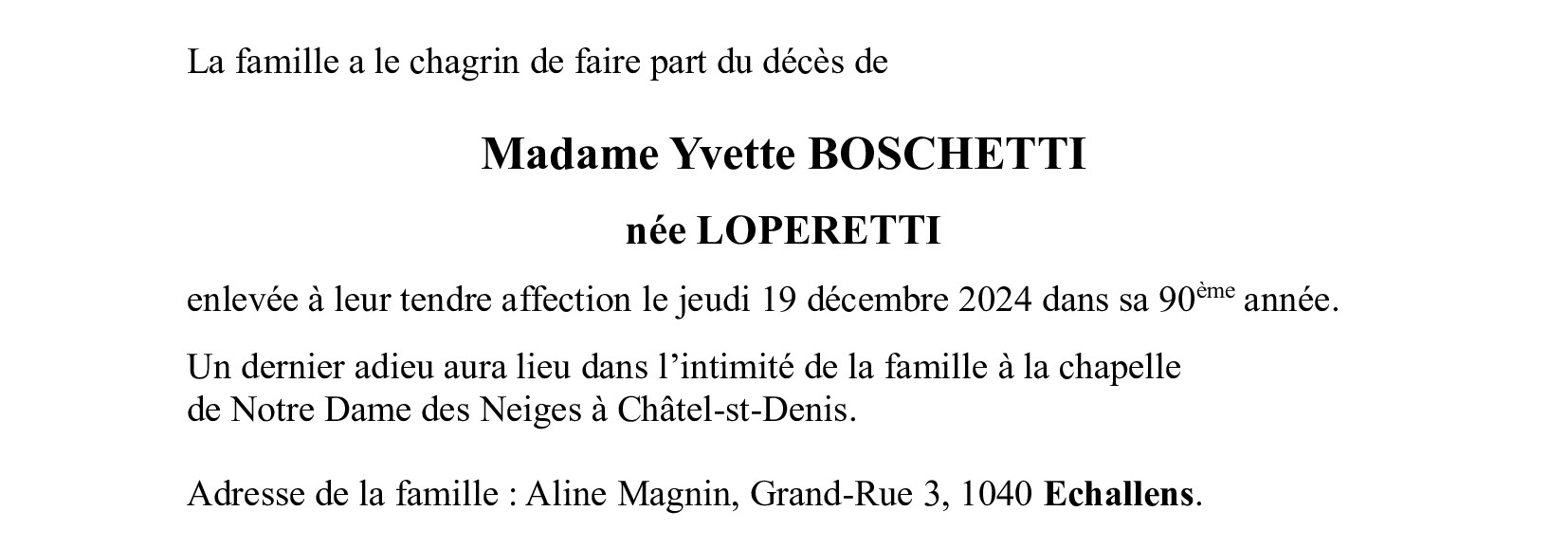 Madame Yvette BOSCHETTI