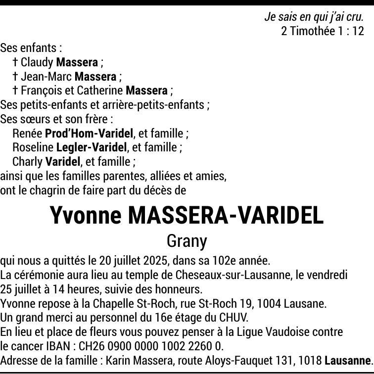Madame Yvonne MASSERA