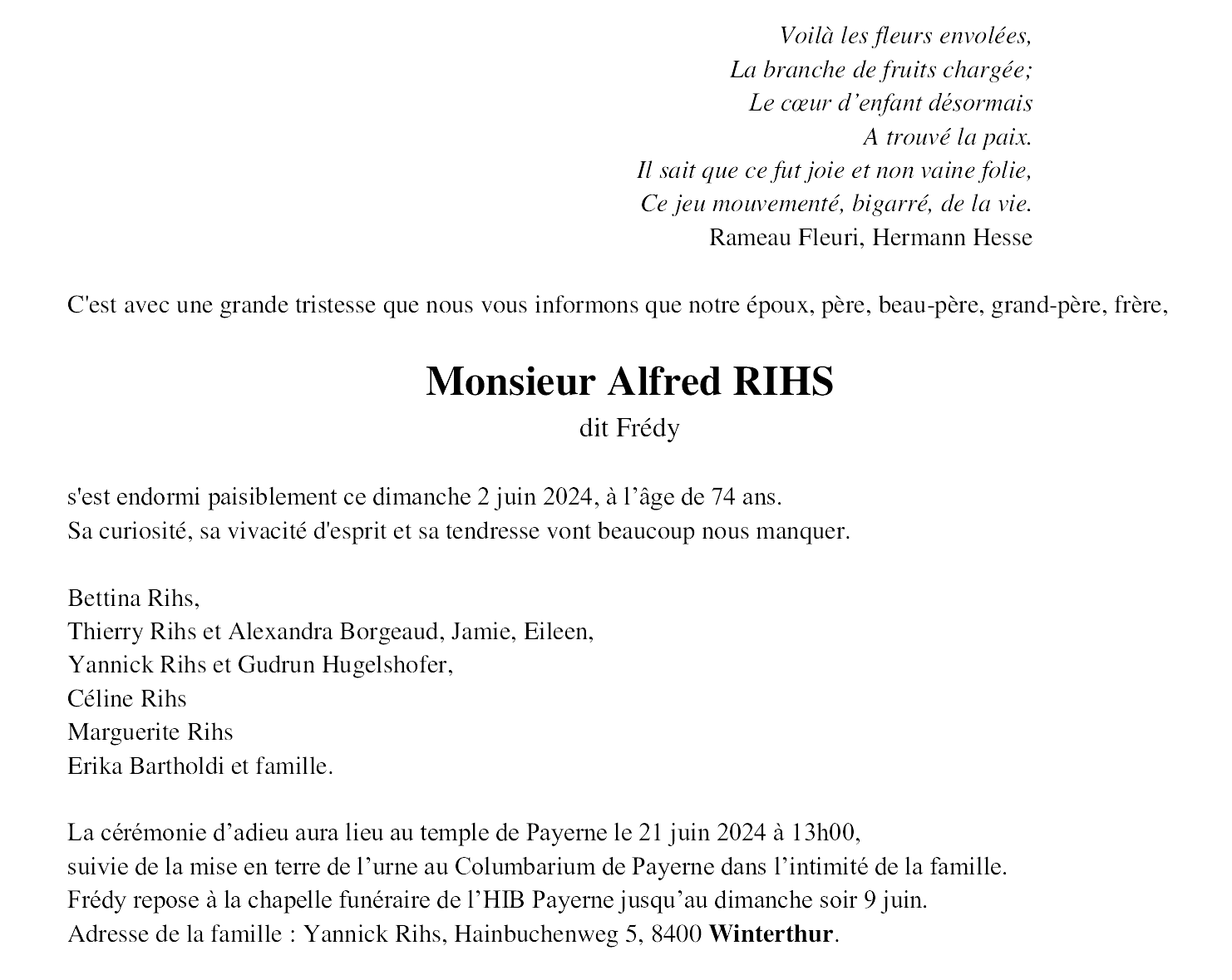 Monsieur Alfred RIHS dit Frédy