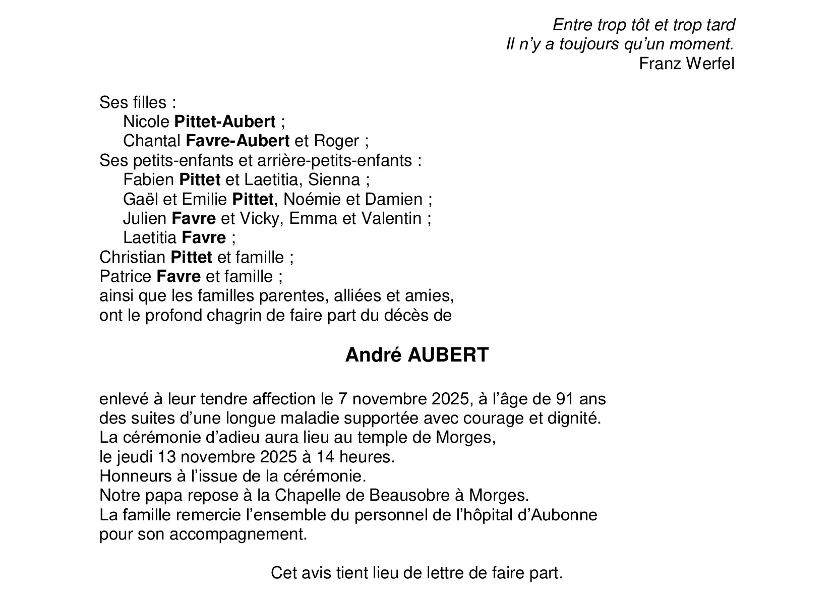 Avis mortuaire PFG