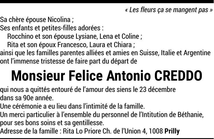 Monsieur Felice Antonio CREDDO