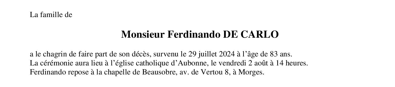 Monsieur Ferdinando DE CARLO