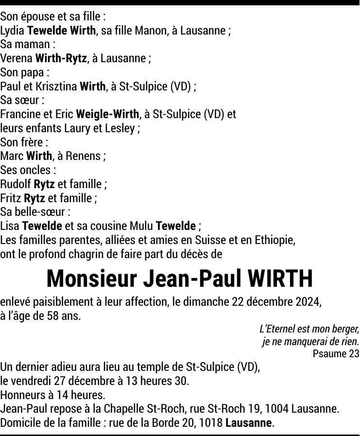 Monsieur Jean-Paul WIRTH 06 mai. 1966 - 22 déc. 2024 Avis mortuaire PFG Partager sur: Galerie PreviousNext PreviousNext