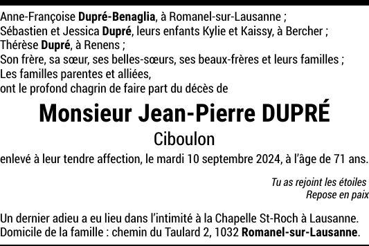 Monsieur Jean-Pierre DUPRÉ
