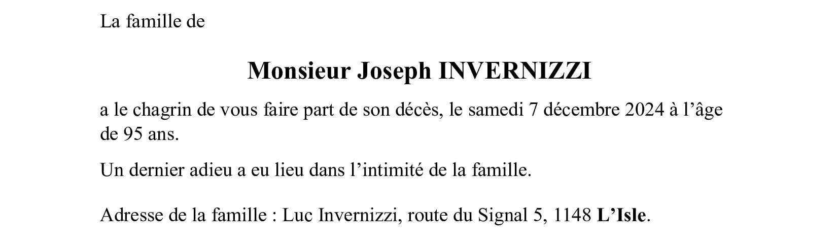 Monsieur Joseph INVERNIZZI