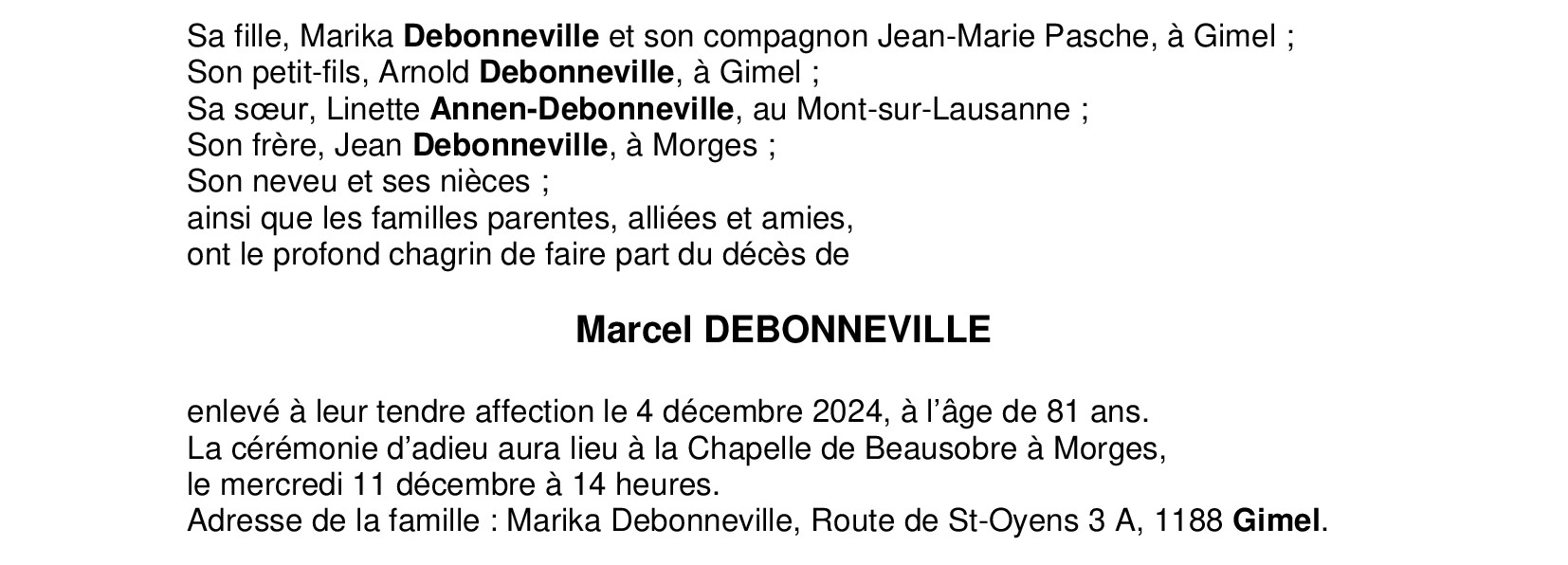 Monsieur Marcel DEBONNEVILLE