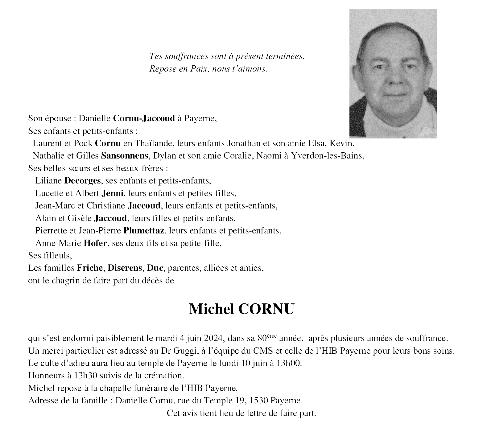 Avis mortuaires / Remerciements