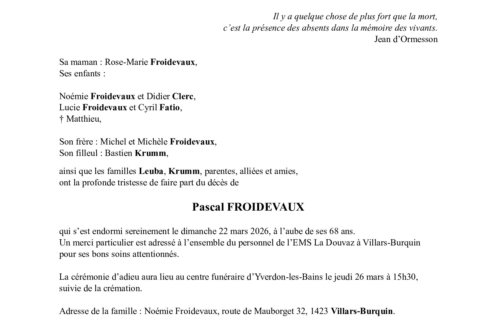 Avis mortuaire PFG