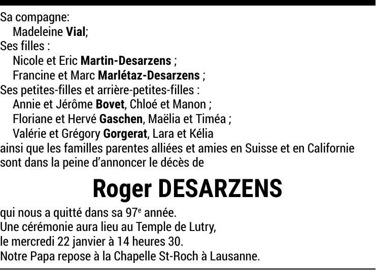 Monsieur Roger DESARZENS 05 mai. 1928 - 14 jan. 2025 Avis mortuaire PFG Partager sur: Galerie PreviousNext PreviousNext