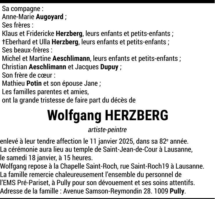 Monsieur Wolfgang HERZBERG 27 avr. 1943 - 11 jan. 2025 Avis mortuaire PFG Partager sur: Galerie PreviousNext PreviousNext